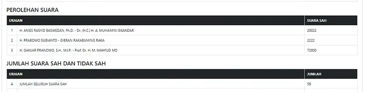 Even more puzzling, there seems to be a lack of simple data validation. Given the relationships between the data in the forms — like candidate votes and the total number of valid ballots — a logical check to confirm these figures aligns should have been in place. Inputs failing to meet the logical relationships should have triggered rejections, or at least invalidations for manual review by KPU. Instead these values were allowed, leading to inaccuracies being propagated through to the preliminary / quick count results shown to the public.